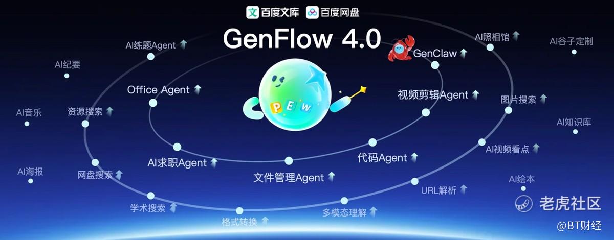4月27日,在百度AI Day开放日上,百度文库网盘联合发布通用智能体「GenFlow4.0」,全面升级Office Agent,个人和团队均可在网盘通用智能体GenFlow4.0中一键部署OpenClaw,把文库网盘打造成自己的「AI工作台」。
