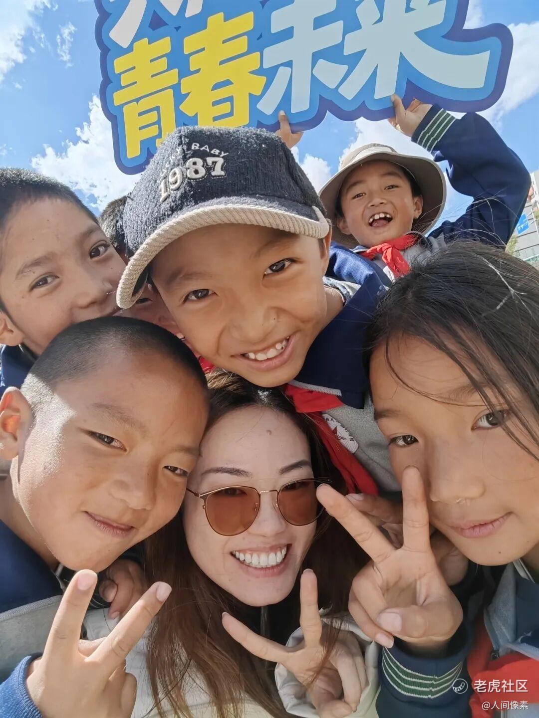 「陈元真(下中)在青海玉树学校里与孩子们在一起,她说这是她的“人生照片”」