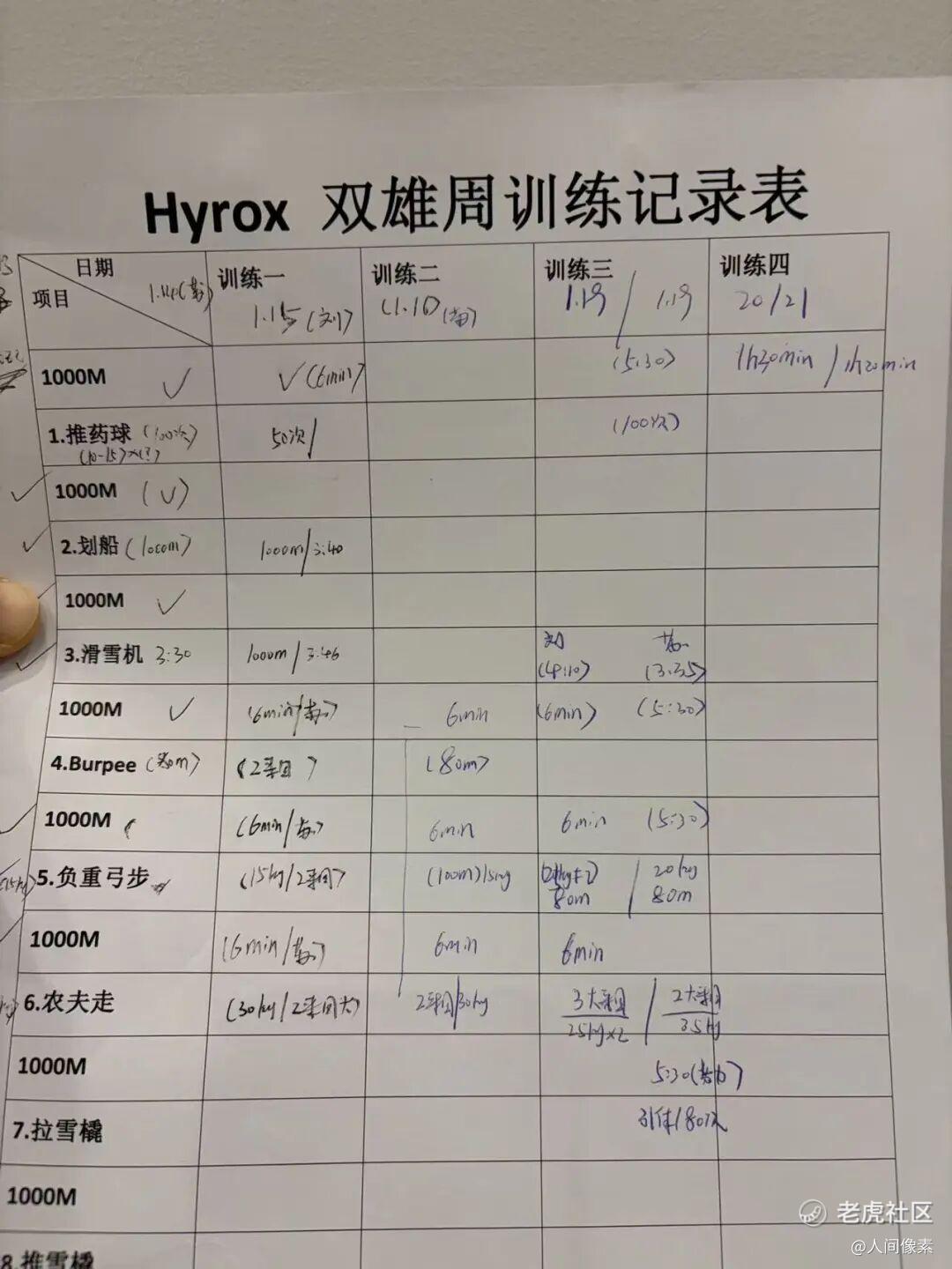 今年初开始,午休或者下班后的健身房里,你很容易就能识别谁是 HYROX 参赛者——他们和队友一起完成训练计划,“农夫行走”“负重箭步蹲”“投药球”“拉雪橇”等项目名称被反复讨论。而公司健身房的专业教练们也会随时下场,义务为这些队伍提供具有针对性的指导。