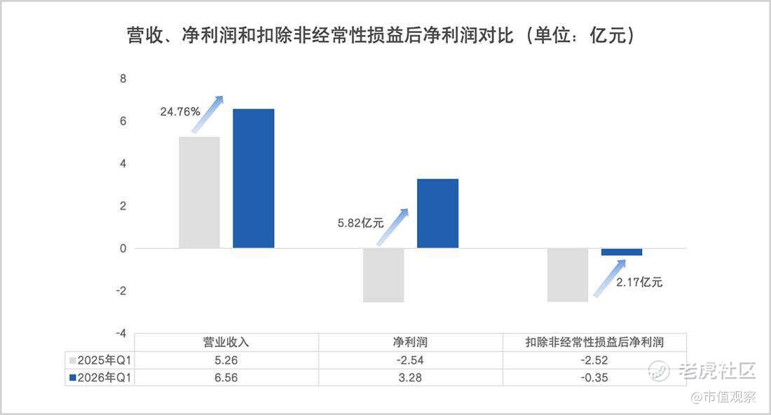 该季度实现营收6.56亿元,同比增长24.76%;归母净利润3.28亿元,成功扭亏,同比增厚5.82亿元。