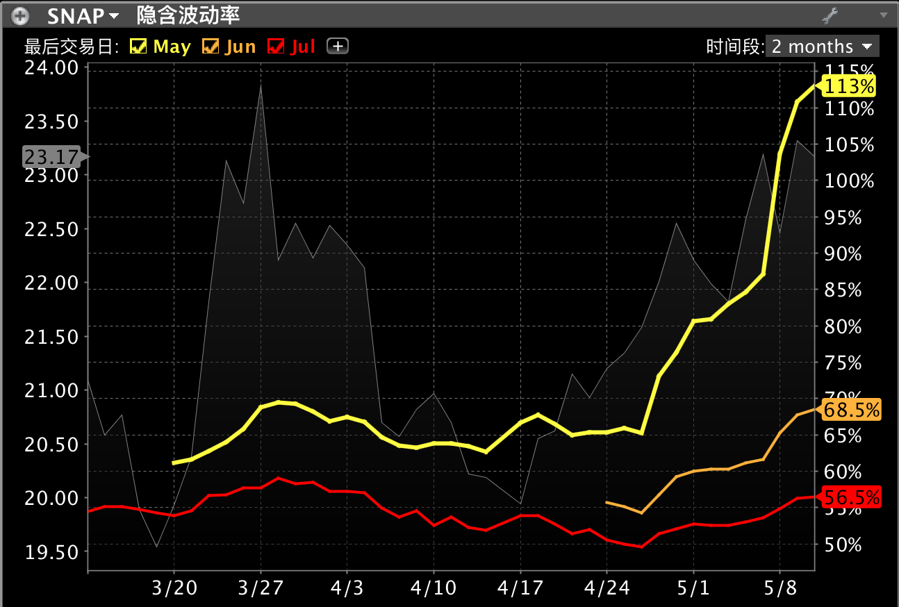 最后感慨一下赌财报果然要提前布局,你看期权这暴增的波动率,本周才买进的话,正股得多大的涨跌幅才能赚钱:#SNAP大跌25个点#