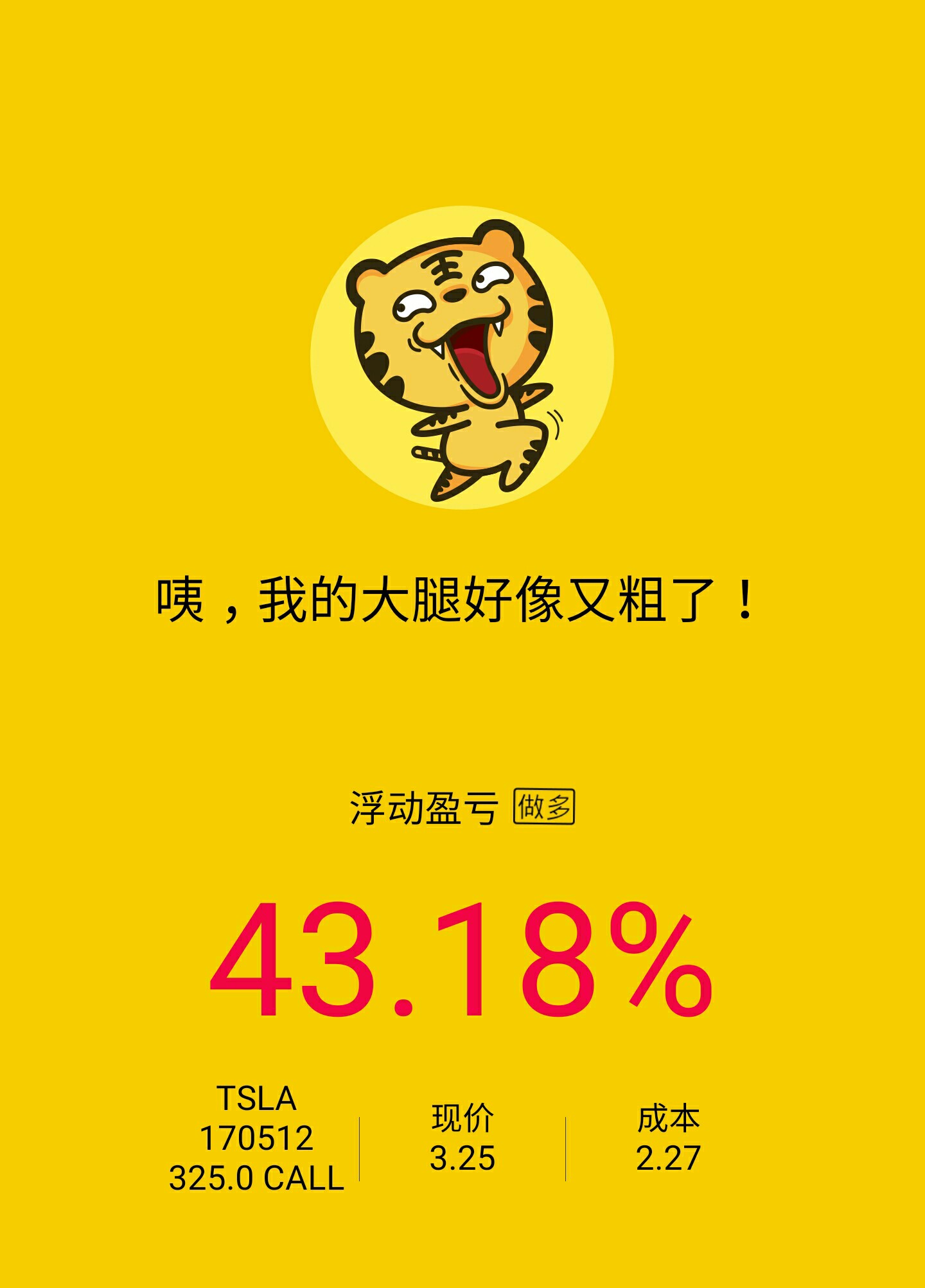 $TSLA 20170512 325.0 CALL(TSLA)$ 第一次玩期权,收获不小啊