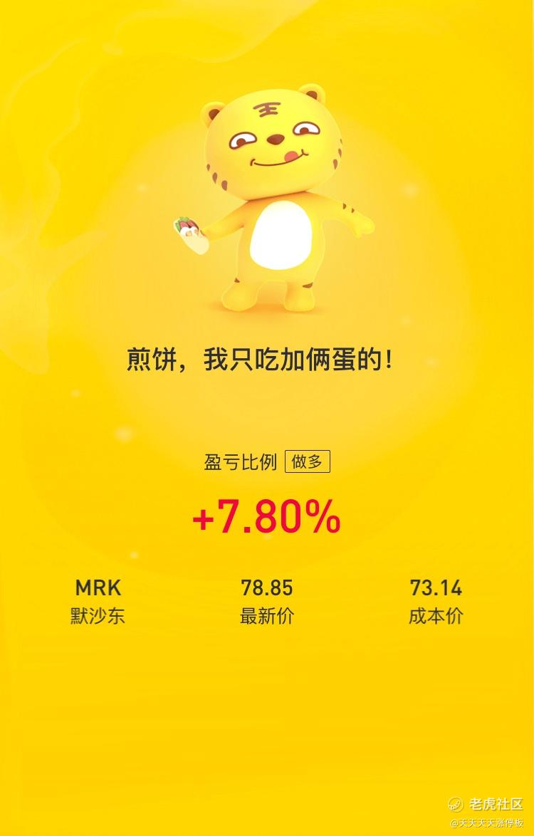 我买卖默沙东几年了,每次暴涨到高点的时候一定要出售,这次九十一都没卖,现在又快跌回成本价了,哎,这个股票倒是没有风险,可是呢涨了10%以后一定要出售,这是它的规律。