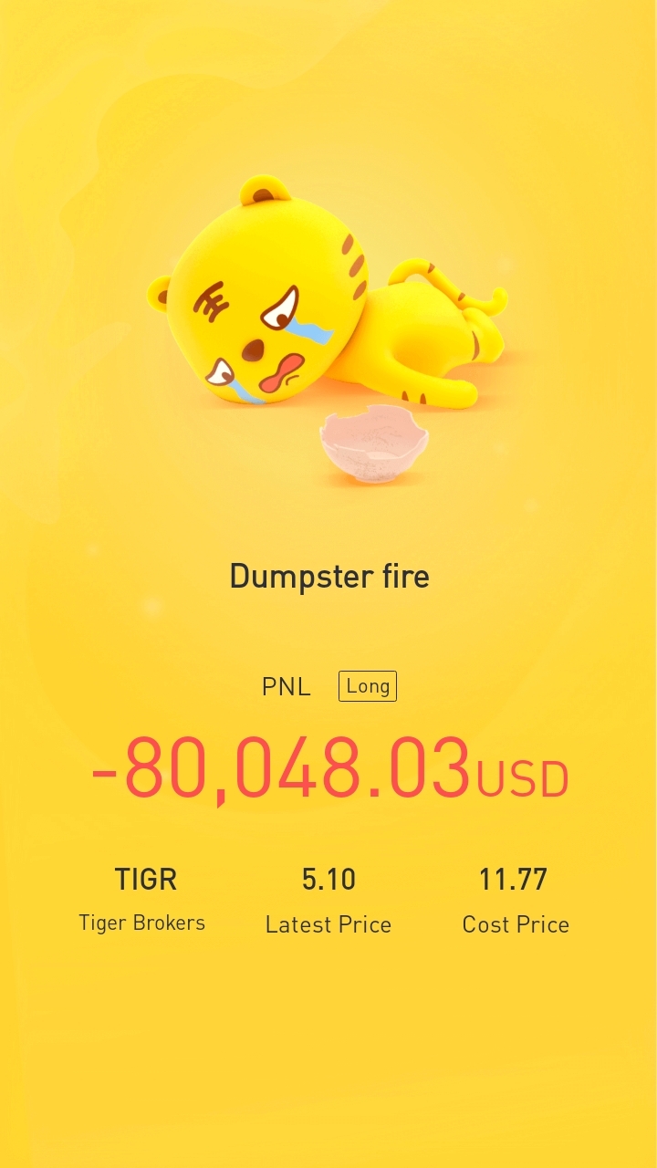 $Tiger Brokers(TIGR)$[开心] No difference liao. I hodl till 2030. 🎉 I shall see how much interest short can pay to take my loss. come.