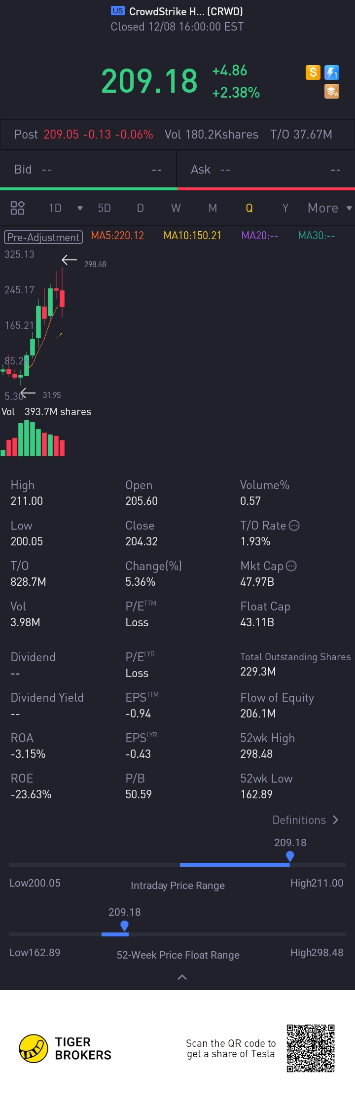 $CrowdStrike Holdings, Inc.(CRWD)$Day by day, CRWD will quietly climb up without you noticing. Buy now if you are smart.