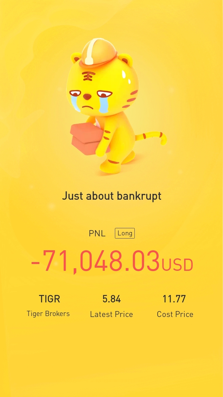 $Tiger Brokers(TIGR)$brought with confidence, hodl with conviction. Good night [得意] btw no margin call and no interest to pay. [害羞]