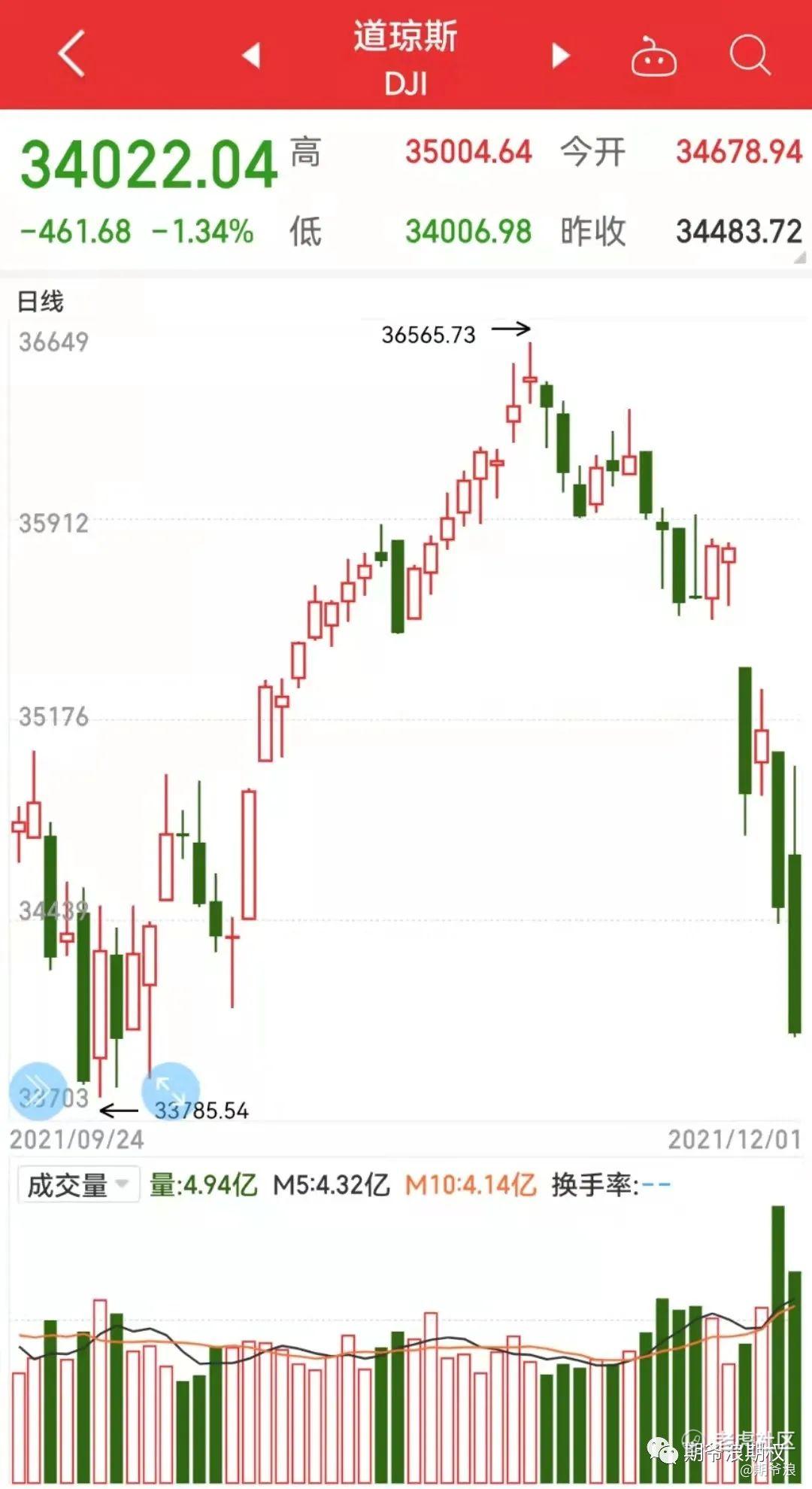 美国当地时间12月1日,CDC正式美国出现首例奥密克戎一株感染病例。消息传出后,昨夜美股由涨转跌,尤其是道指大幅回落近千点,跌幅不算太大,但趋势有点吓人,大家看图感受一下。