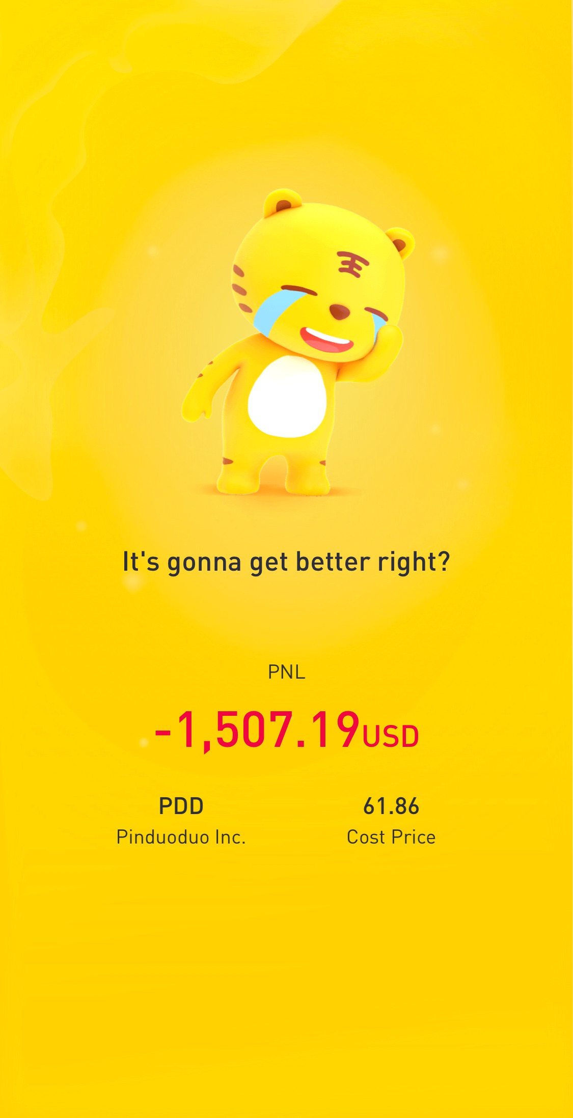 $Pinduoduo Inc.(PDD)$Not a lot of money loss but I not going to hold u anymore, not any of Chinese stock! KNN CCB!