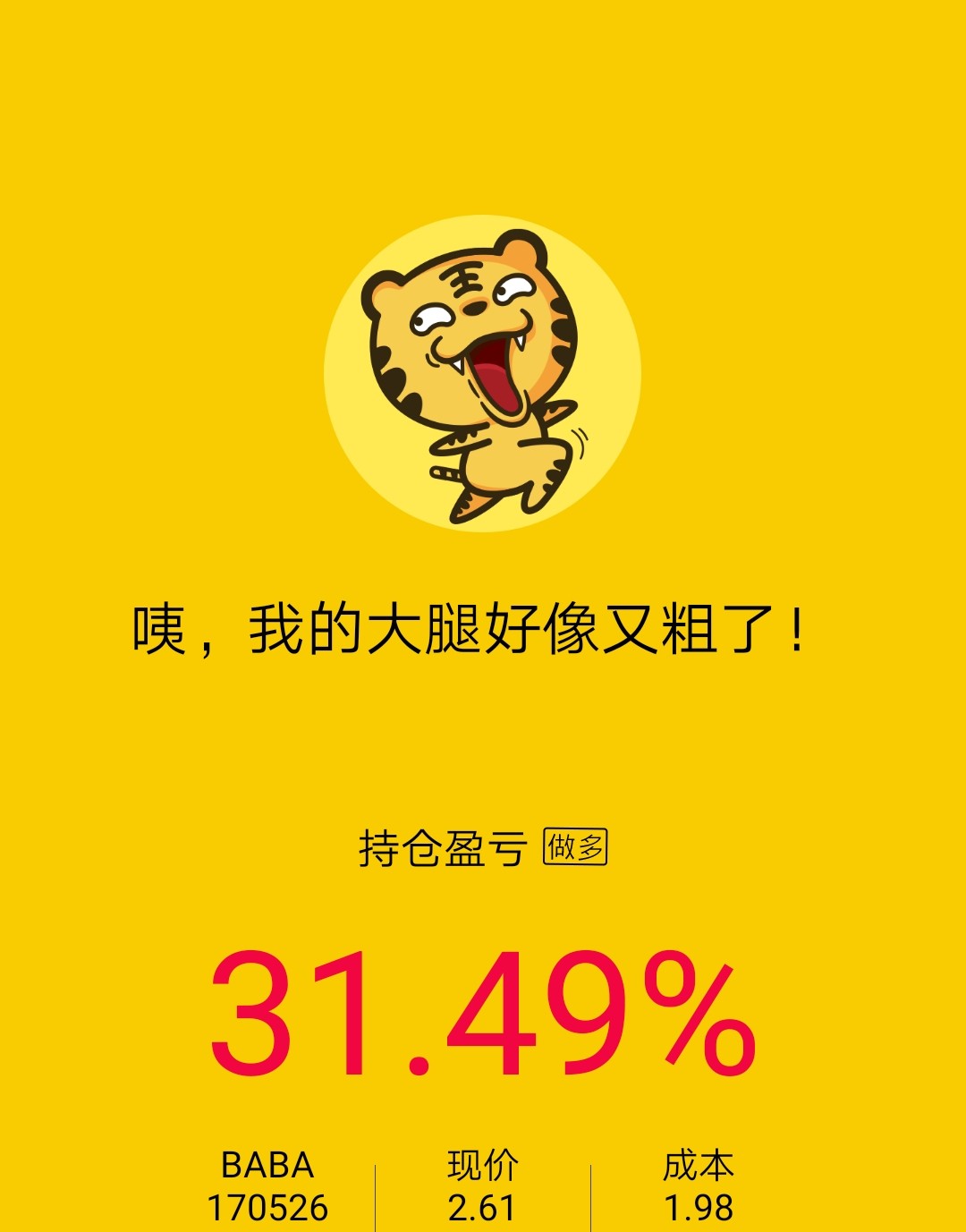 $BABA 20170526 125.0 CALL(BABA)$ 第一次买期权 说实话 很赚也很刺激 不过风险也很大 昨天最多时 跌到90%+