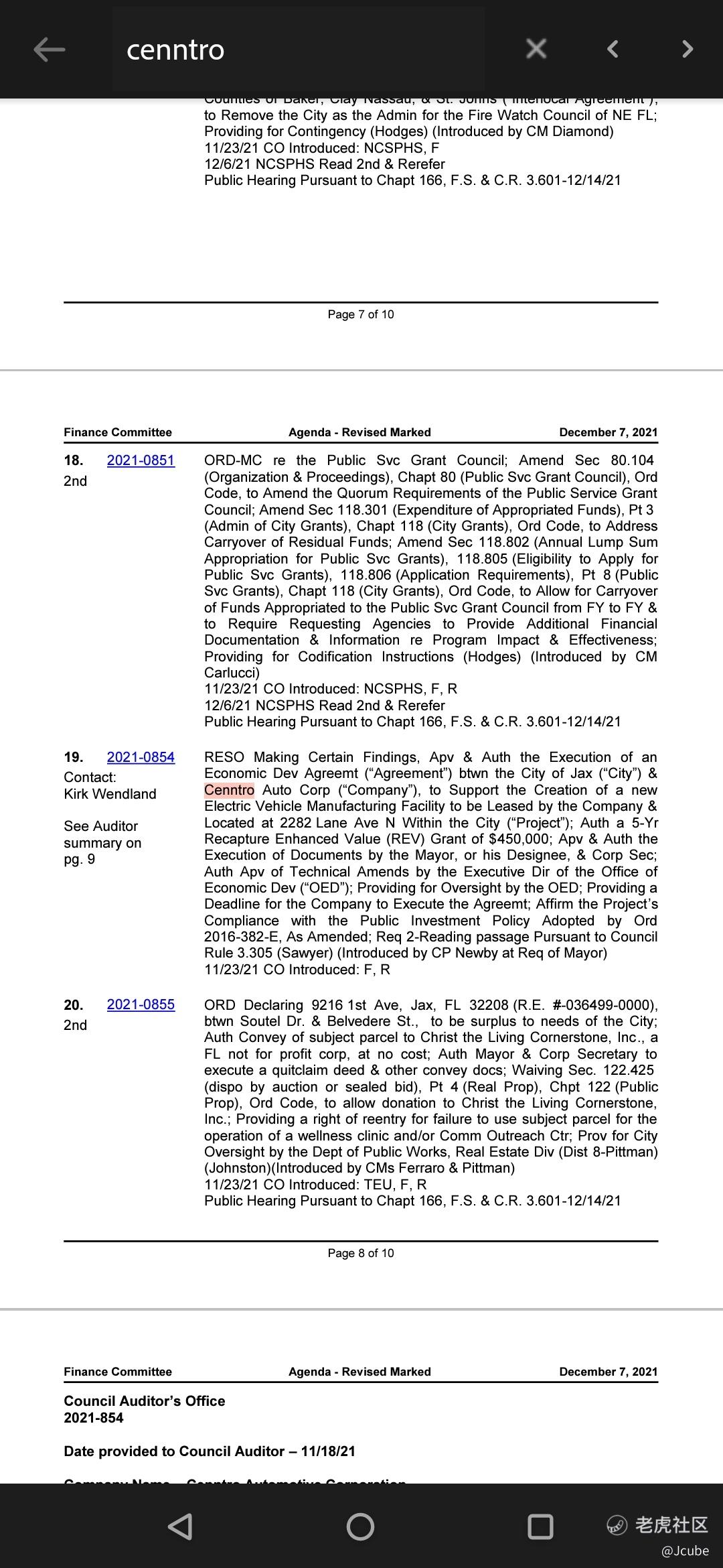Jacksonville City Council Meeting 還在開會 投票是否通過讓cenntro在這建廠還有補貼 希望通過了有點動靜吧😂
