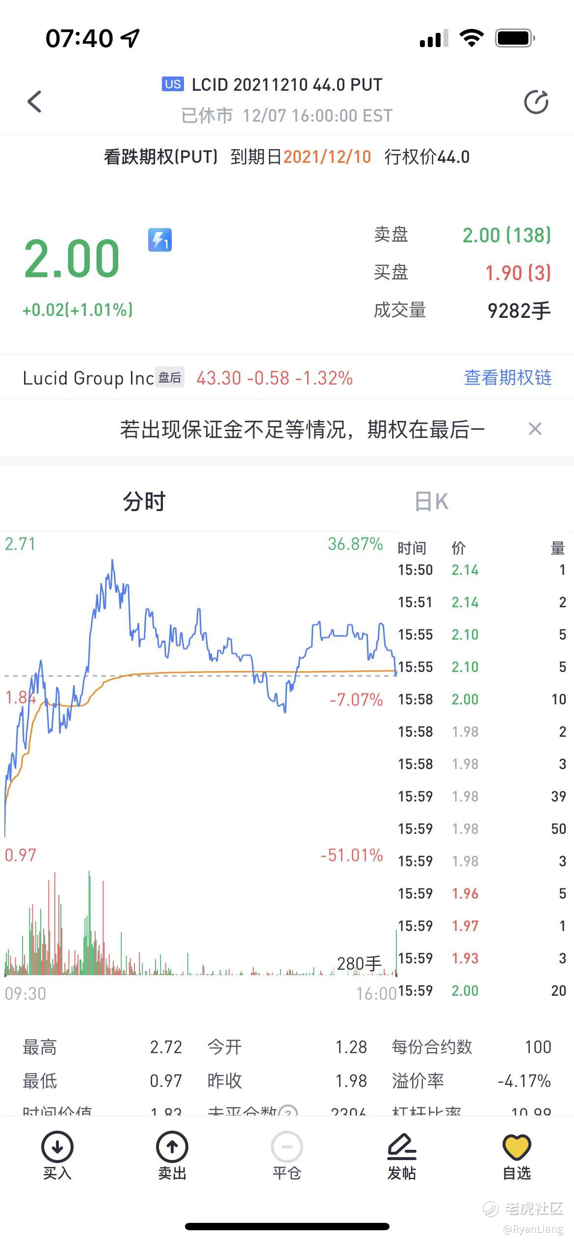 昨晚群内一共两单 依然是依靠1min线的scalp [财迷] $英特尔(INTC)$ $Lucid Group Inc(LCID)$ 全部是put