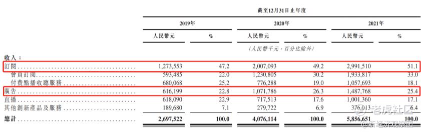 其中,订阅是第一大营收来源,于2019年、2020年、2021年分别实现收入12.74亿元、20.07亿元、29.92亿元,占总营收的比重分别为47.2%、49.2%及51.1%。