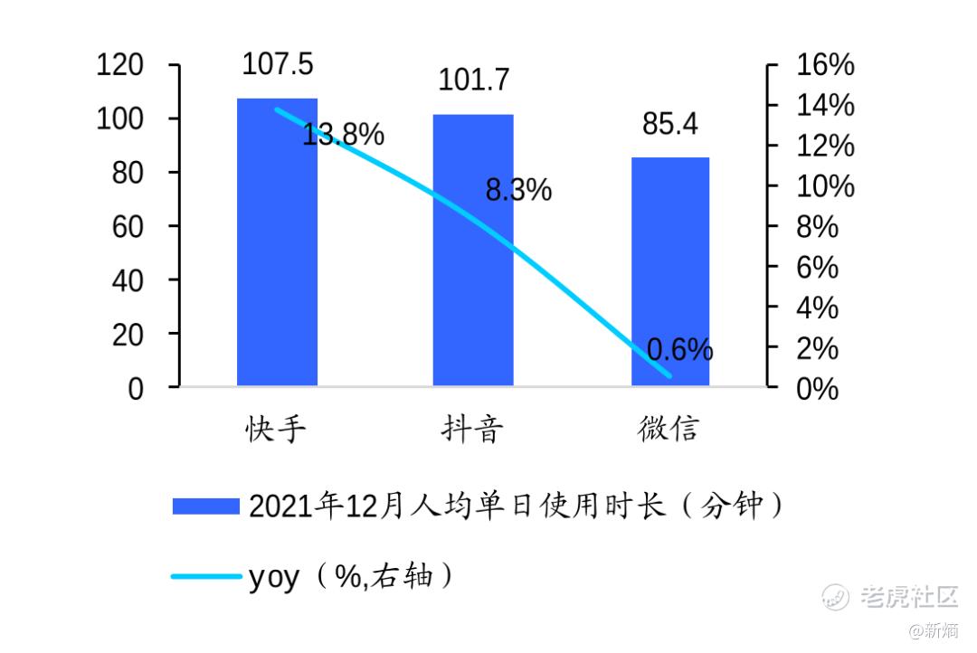 多次刷屏朋友圈的视频号,得益于多场独家的线上演唱会,虽然用户日活高速增长,但是其杀时间的能力却明显不足。在视灯的数据统计中,2021年视频号人均使用时长35分钟。相比抖音、快手人均100分钟以上的使用时长,均有不小差距。