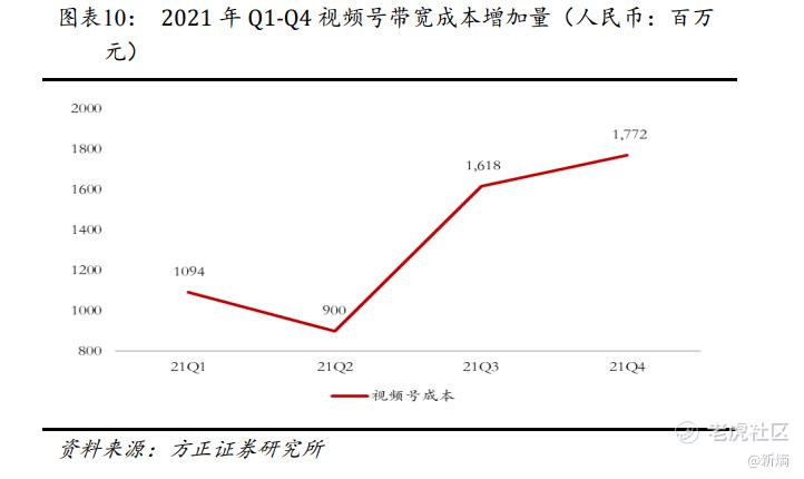 根据方正证券估算,在2021年举办多场长线上演唱会的视频号,本年度的Q1-Q4成本增长量分别为10.94亿元、9亿元、16.18亿元、17.72亿元。短期来看,尚处于商业化探索的视频号,这部分成本无法转化为收入,进而影响2021年的腾讯业绩。