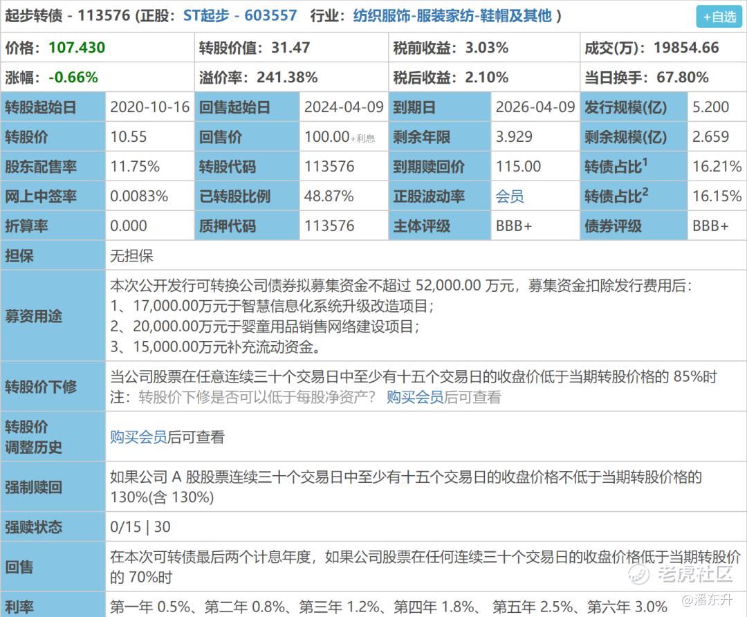 点评总结:公司本身财务状况没有太大问题,因为违规使用资金被ST,短期影响较大,如果未来关联公司财务状况好转,且自身公司无违规使用资金行为,那么只要长期业绩稳健,转债本身的价格也会有所上涨,但是短期风险还是有的,稳健者可以100元以下再入场。