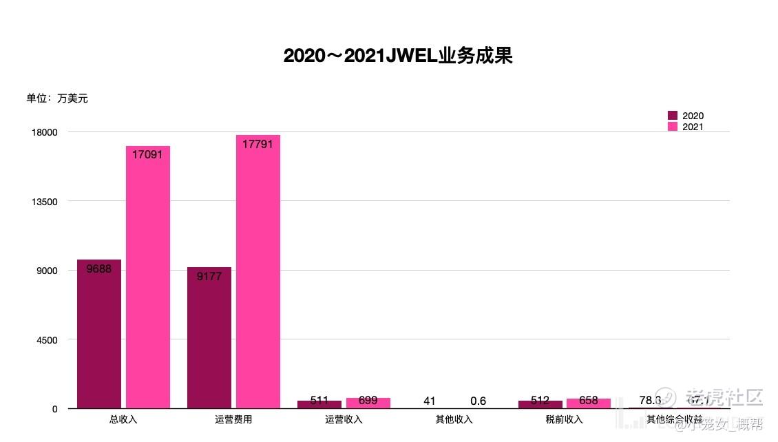 - 虽然 JWEL2021 年的收入相比于 2020 年显著增长,但同时其运营成本也显著增长,最终公司亏损。但是投资者也应该意识到,JWEL 的运营成本增加主要是公司在业务开拓上花了大功夫,同时投资者也需合理预判 JWEL 未来的发展前景和态势。