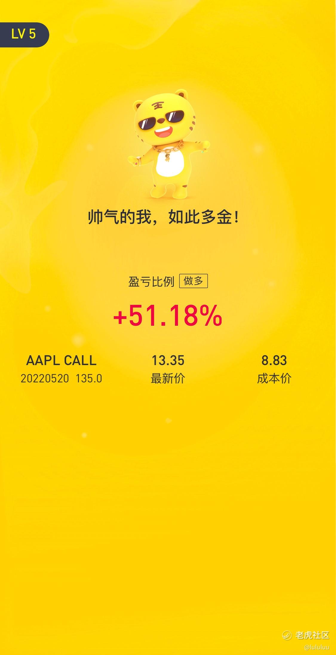 {"i18n":{"language":"zh_CN"},"detailType":1,"isChannel":false,"data":{"magic":2,"id":612428411,"tweetId":"612428411","gmtCreate":1652458945734,"gmtModify":1652459581160,"author":{"id":4091669118331060,"idStr":"4091669118331060","authorId":4091669118331060,"authorIdStr":"4091669118331060","name":"lululuu","avatar":"https://static.tigerbbs.com/97a2b8418c6f22c9d2d5737d96293f01","vip":1,"userType":1,"introduction":"","boolIsFan":false,"boolIsHead":false,"crmLevel":4,"crmLevelSwitch":1,"currentWearingBadge":{"badgeId":"35ec162348d5460f88c959321e554969-3","templateUuid":"35ec162348d5460f88c959321e554969","name":"传说交易员","description":"证券或期货账户累计交易次数达到300次","bigImgUrl":"https://static.tigerbbs.com/656db16598a0b8f21429e10d6c1cb033","smallImgUrl":"https://static.tigerbbs.com/03f10910d4dd9234f9b5702a3342193a","grayImgUrl":"https://static.tigerbbs.com/0c767e35268feb729d50d3fa9a386c5a","redirectLinkEnabled":0,"hasAllocated":1,"isWearing":1,"stampPosition":0,"hasStamp":0,"allocationCount":1,"allocatedDate":"2024.03.23","exceedPercentage":"93.48%","individualDisplayEnabled":0},"individualDisplayBadges":[],"fanSize":4,"starInvestorFlag":false},"themes":[{"themeId":"5bfad02ab61749c8bfe6573ac7bbe8a3","categoryId":"b76d3c59fc044df59779c041b25852a6","name":"晒晒更赚钱","type":0,"rnLink":"https://laohu8.com/RN?name=RNTheme&page=/theme/detail&rndata={\"themeId\":5bfad02ab61749c8bfe6573ac7bbe8a3}&rnconfig={\"headerBarHidden\": true}","description":"晒晒你的盈亏单,秀秀虎友们的实力!","image":"https://static.tigerbbs.com/347184265ee0be8c363259951f8033cb"}],"images":[{"img":"https://static.tigerbbs.com/c36cbb834cb1ea64b1ed6a7e1487d7b7","width":"1125","height":"2196"}],"coverImages":[{"img":"https://static.tigerbbs.com/c36cbb834cb1ea64b1ed6a7e1487d7b7","width":"1125","height":"2196"}],"extraTitle":"","html":"<html><head></head><body><p><a href=\"https://laohu8.com/OPT/AAPL 20220520 135.0 CALL\">$AAPL 20220520 135.0 CALL$ </a>👌</p><img src=\"https://static.tigerbbs.com/c36cbb834cb1ea64b1ed6a7e1487d7b7\" tg-width=\"1125\" tg-height=\"2196\"></body></html>","htmlText":"<html><head></head><body><p><a href=\"https://laohu8.com/OPT/AAPL 20220520 135.0 CALL\">$AAPL 20220520 135.0 CALL$ </a>👌</p><img src=\"https://static.tigerbbs.com/c36cbb834cb1ea64b1ed6a7e1487d7b7\" tg-width=\"1125\" tg-height=\"2196\"></body></html>","text":"$AAPL 20220520 135.0 CALL$ 👌","highlighted":1,"essential":1,"paper":1,"likeSize":0,"commentSize":0,"repostSize":0,"favoriteSize":0,"link":"https://laohu8.com/post/612428411","repostId":0,"isVote":1,"tweetType":1,"viewCount":929,"commentLimit":10,"likeStatus":false,"favoriteStatus":false,"reportStatus":false,"symbols":[],"verified":2,"subType":0,"readableState":1,"langContent":"CN","currentLanguage":"CN","warmUpFlag":false,"orderFlag":false,"shareable":true,"causeOfNotShareable":"","featuresForAnalytics":[],"commentAndTweetFlag":false,"andRepostAutoSelectedFlag":false,"upFlag":false,"length":25,"xxTargetLangEnum":"ZH_CN"},"commentList":[],"isCommentEnd":true,"isTiger":false,"isWeiXinMini":false,"url":"/m/post/612428411"}