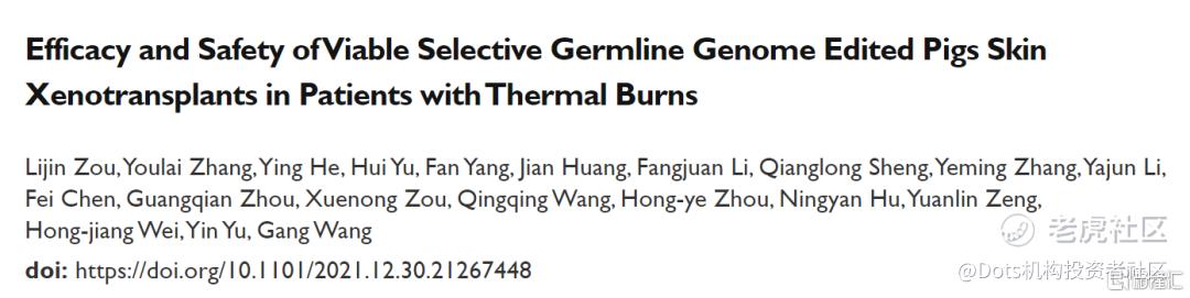 此前,邹立津团队与中科院深圳先进院于寅团队、浙江大学基础医学创新研究院王刚团队合作,在2021年率先进行了基因编辑的猪皮肤的人体试验,用于治疗烧伤病人的皮肤修复。他们敲除了猪的3个基因,并敲入了8个人类基因,从而使猪器官尽可能被人体免疫系统所接受。这项研究于2022年1月7日发表在了预印本medRxiv上。