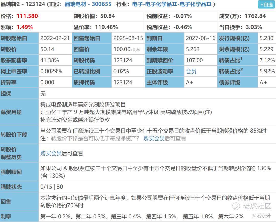 后市前景:正股拥有半导体,光刻胶概念,业绩还不错。且晶瑞转债之前到达过500元以上的高价,作为高科技企业,该转债未来有一定的想象空间。