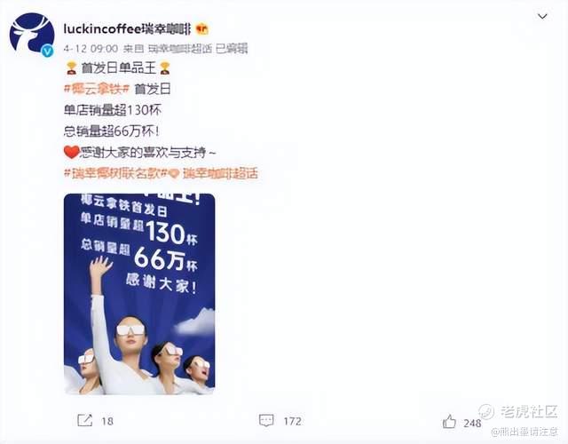 而不知是巧合还是注定,在全新开始的第一天,瑞幸凭借联名款椰云拿铁赢得“开门红”。这也让我们意识到,过去两年里,与瑞幸自救同步进行的还有来自消费者的他救。