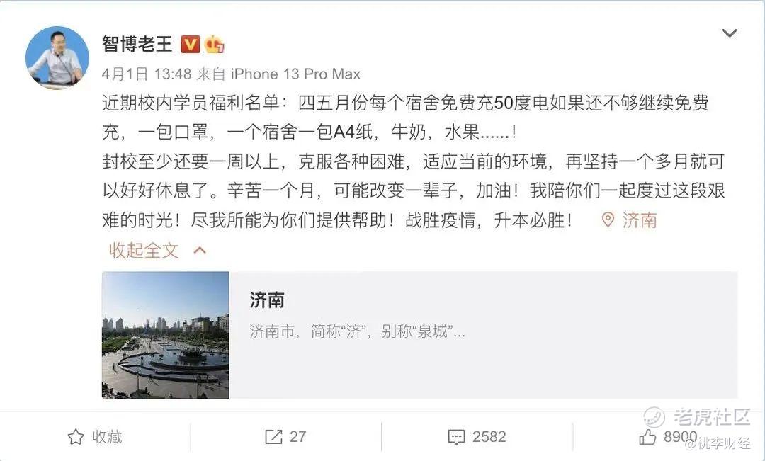 相比被外界关注,他更关注学生是否认可自己。曾有资本和律所抛来橄榄枝,但王校长拒绝了。在他看来,上市敲钟,享受光环,赚更多的钱,远远不如学生的认可重要,这也是他在微博中被虐而快乐着的原因。