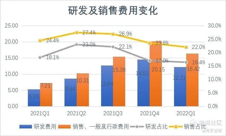 虽然研发费用整体呈上升趋势,不过其占比从去年三季度便开始下降,而小鹏的销售费用占比也始终处于高位。