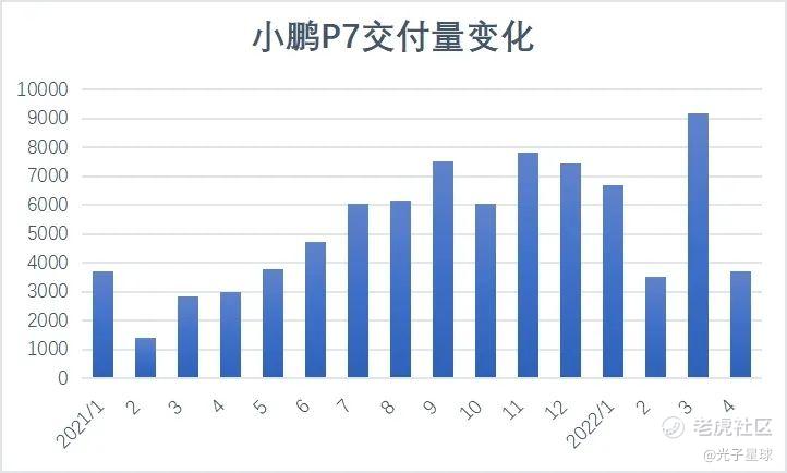 值得注意的是小鹏今年3月交付15414台,其中P7交付量达到9183台首次突破单月九千大关,同时P7还成为了新势力首个突破十万量产的纯电车型。