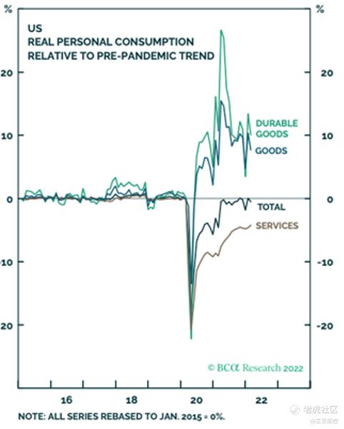 图6:美国消费将从商品消费转为服务消费从而促进供需平衡减少通胀