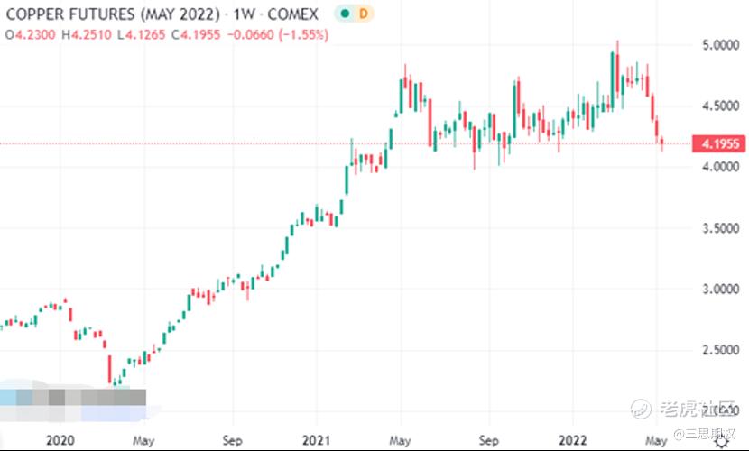 图7:铜价自疫情以来的先跌后涨之后,近期又迎来了一轮接近20%的下跌行情,预计破4指日可待。