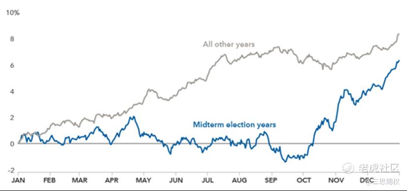 图10:中期选举后的一年 vs其他年份 的标普指数走势