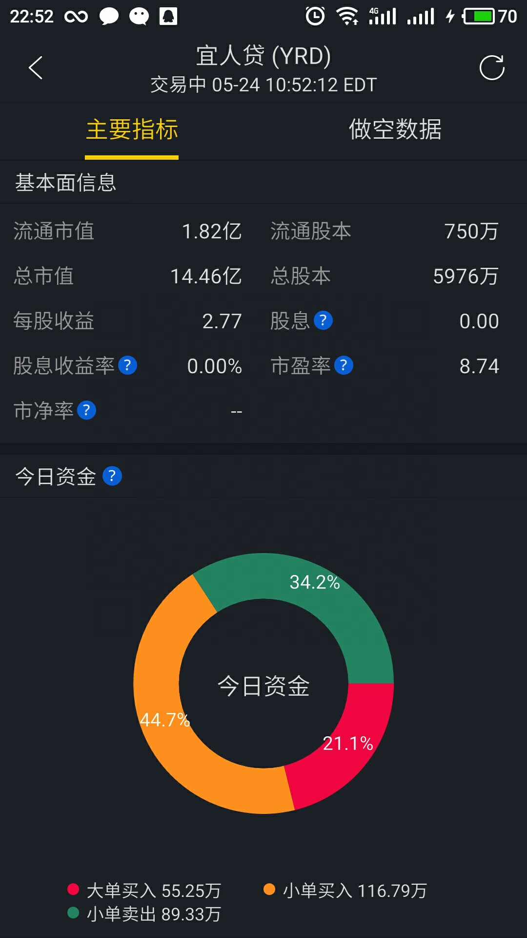 $宜人贷(YRD)$ 只有大单买入,说明大单卖出前两天基本出货了,这两天上26应该问题不大