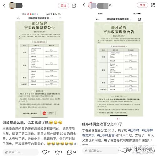 红布林这样高比例的上调佣金,有网友就吐槽30%的佣金太离谱、太夸张了,有些太坑,要转向其它寄卖平台。之前,还有其它网友将几家包包寄卖平台进行了比较,发现红布林的佣金率最高,而且估价也很低,一些商品成功卖出扣除佣金、运费后,还需要支付提现费。