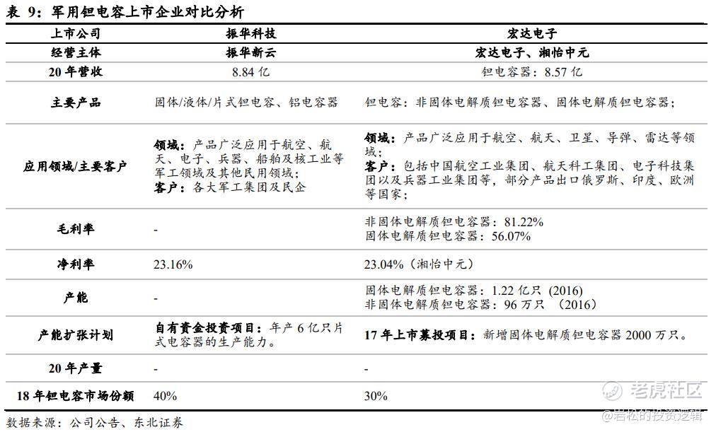在国内,军用钽电容生产厂商主要包括振华科技、宏达电子及其子公司湘怡中元。这两家企业占据了国内绝大部分市场,其中振华科技占据领先优势。
