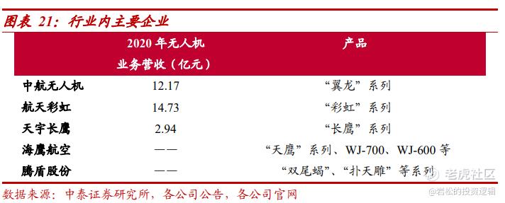 2.军用无人机:航天彩虹、中航无人机、天宇长鹰、海鹰航空、腾盾股份