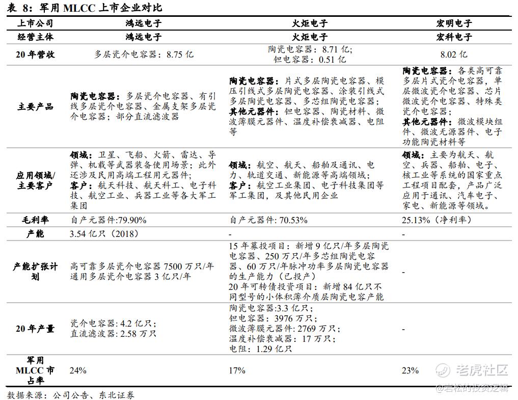 1.MLCC :火炬电子、鸿远电子、宏明电子