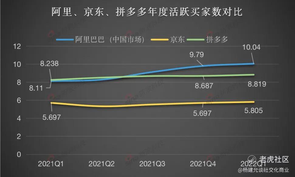 从年活跃买家数来看,阿里、京东、拼多多三家均告别了高速增长时代,进入平稳阶段。