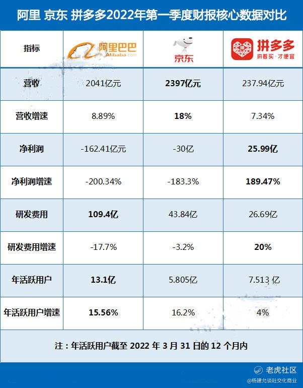 近日阿里巴巴、京东和拼多多等综合电商平台三巨头发布了2022年一季度财报。三家电商在营收、净利润、用户规模等方面维度上呈现出了不同的表现。