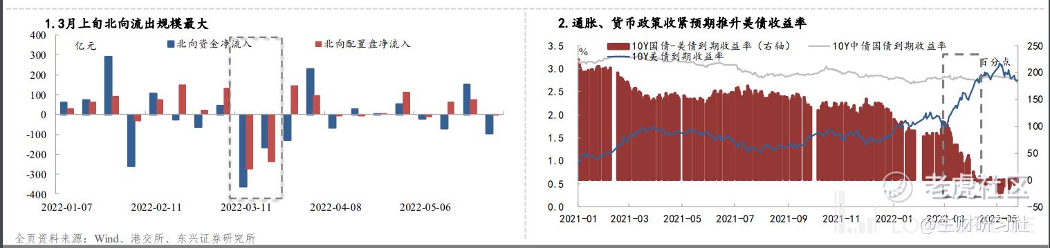 俄乌冲突及海外收紧对北向造成负面冲击。2 月末爆发的俄乌冲突不仅加重避险情绪,也推升通胀、货币政策收紧预期,导致 3 月上旬北向大幅流出超 500 亿元。 3/7-3/18期间10Y美债到期收益率大幅上行40BP。