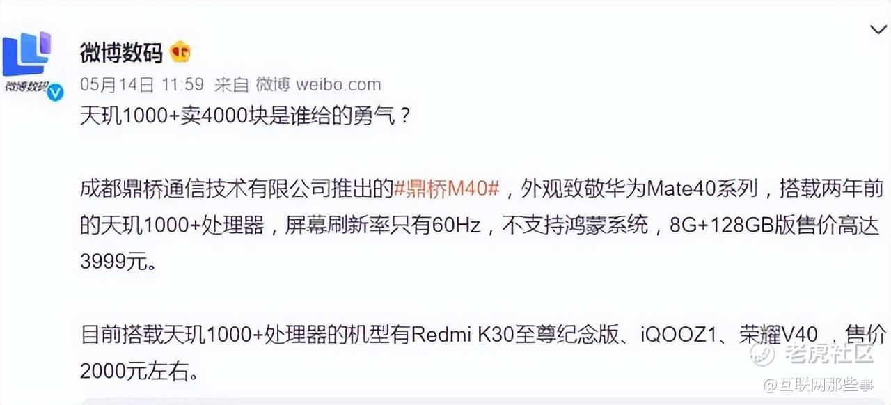 难以想象,在一线品牌手机打得死去活来之际,一些贴牌“山寨”机却开启了逆向财富密码,将低配高价玩出了花,这里面,尤以傍上华为的鼎桥M40为盛,近日,一款名为鼎桥M40的手机在华为专卖店和京东商城同步上架,主打的噱头有俩,一个是近乎复制华为的外观,一个是“华为智选”产品,按理应该不愁卖才对,可不成想却因销量遇冷上了热搜,问题究竟出在哪里?