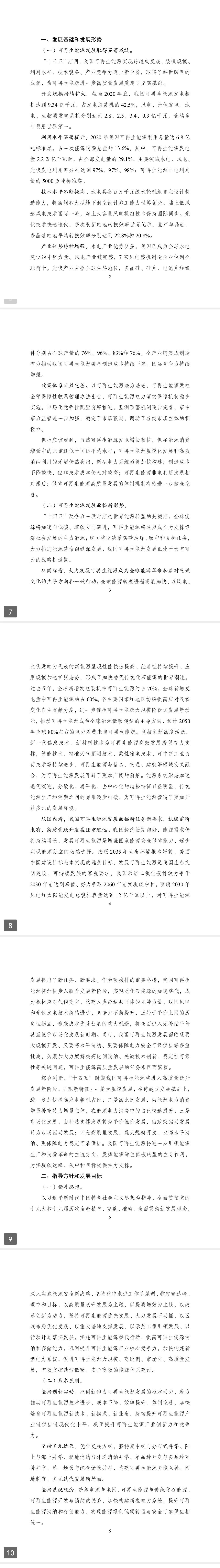 6月1日,国家发改委、国家能源局、财政部、自然资源部、生态环境部、住房城乡建设部、农业农村部、气象局、林草局等部门联合印发《“十四五”可再生能源发展规划》(以下简称《规划》)。《规划》明确,目标到 2025年,可再生能源消费总量达到10亿吨标准煤左右,占一次能源消费的18%左右;可再生能源年发电量达到3.3万亿千瓦时左右,风电和太阳能发电量实现翻倍;全国可再生能源电力总量和非水电消纳责任权重分别达到33%和18%左右,利用率保持在合理水平;太阳能热利用、地热能供暖、生物质供热、生物质燃料等非电利用规模达到6000万吨标准煤以上。