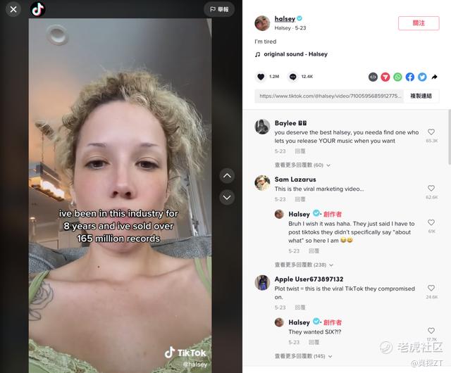 “一切都是营销,而我只是想发首新歌,姐真的值得更好的,累了。”Halsey在一个TikTok视频中骂起了TikTok。这位从业8年、卖出过1.6亿张唱片的歌手无奈被TikTok所左右。