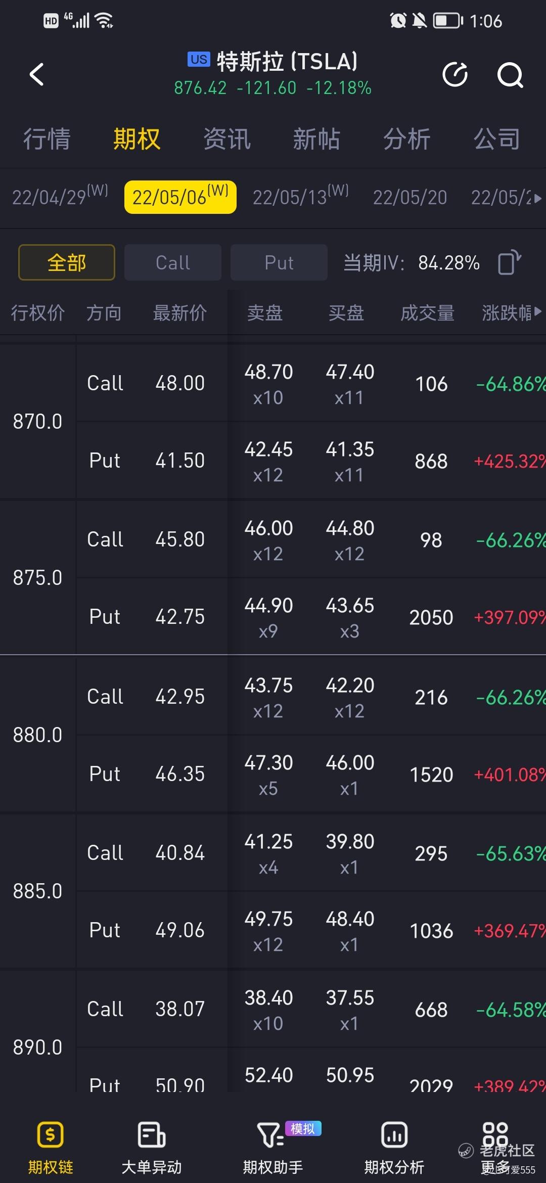 在老虎的个股交易界面可以点期权就可以看到相应的详细信息。
