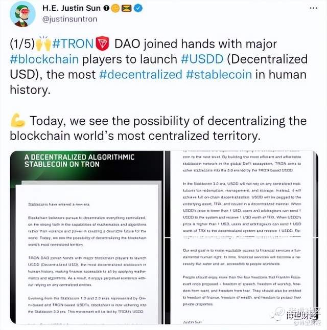 这意味着,由孙宇晨一手创立的波场,这个USDT全球最大的稳定币网络,想要通过发行去中心化稳定币,突破当前发展瓶颈,同时在区块链领域构建一个类似于“央行”职能的去中心化机构为其发展保驾护航。