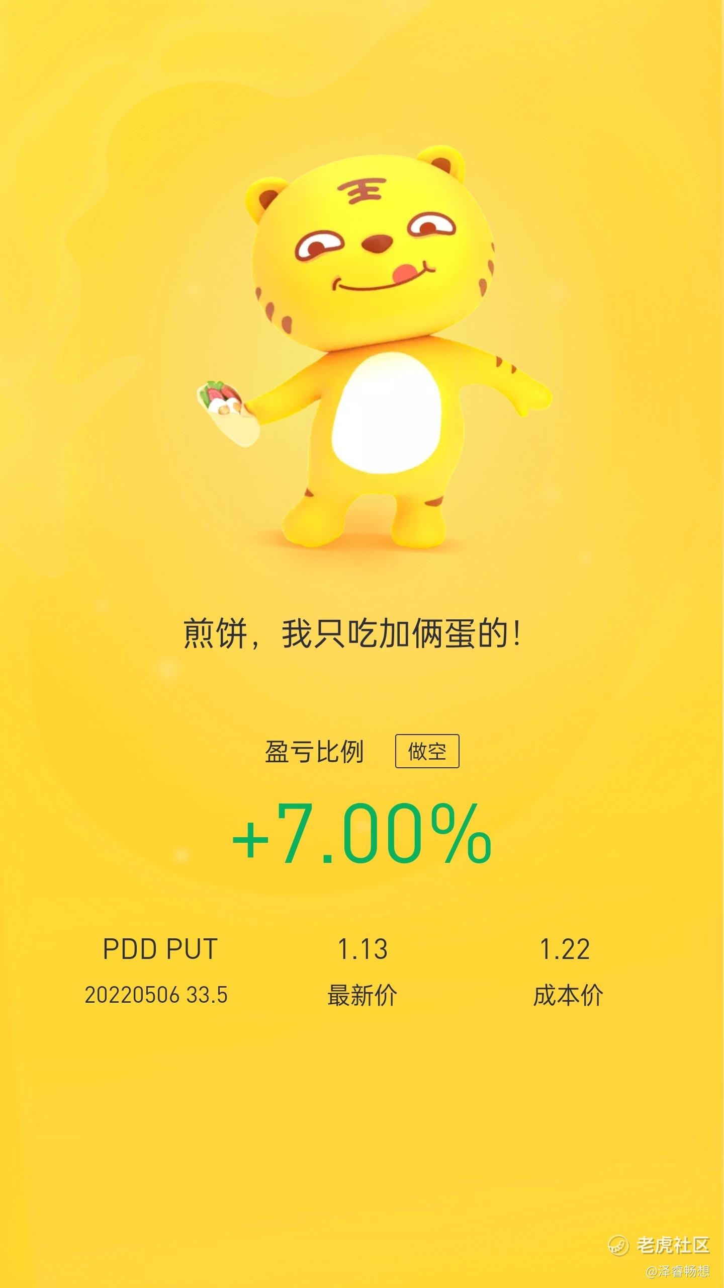 $PDD 20220506 33.5 PUT$ 一直在DD各家公司的核心,最终在$拼多多(PDD)$$京东(JD)$$腾讯控股(00700)$还有一些其他小公司中选择。选择卖出这个put,是希望能以更便宜的价格买到。最黑暗的时候就是需要耐心耐心。中概股整体而言已经很便宜,当然不排除seo的风险和大环境的影响会继续下跌,只能耐心持有当时间的朋友。