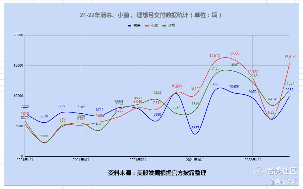 摘要:2022年4月1日,蔚小理公布了3月汽车交付量,蔚来3月交付量为9985辆,同比增长仅37.6%。小鹏汽车3月交付量为15414辆,同比增长202%,环比增长148%。理想汽车交付11034辆理想ONE车型,同比增长125.2%。2022年第一季度蔚小理交付量出炉,蔚来交付25768辆,同比增长28.5%;理想汽车累计交付31716辆新车,同比增长152.1%;第一季度累计交付量为34561辆,同比增长260%。截止2022年3月31日,小鹏累计交付已突破17万台,理想汽车总交付量达到15.58万辆,蔚来总交付量达到19.28万辆汽车。
