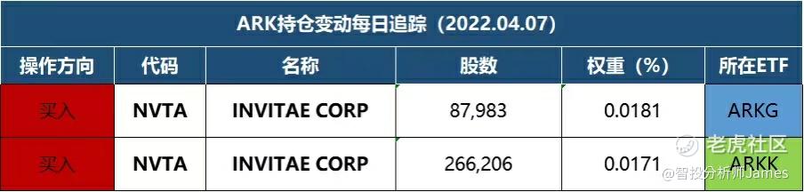 【Ark旗下基金持仓变化小结,2022年04月07日】