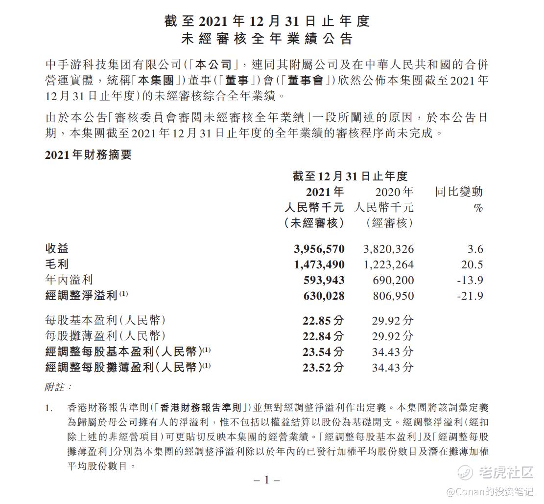 ①中手游收入39.5亿,增长3.6%,净利润5.93比,同比下降13.9%,经调整利润为6.3亿,同比减少21.9%