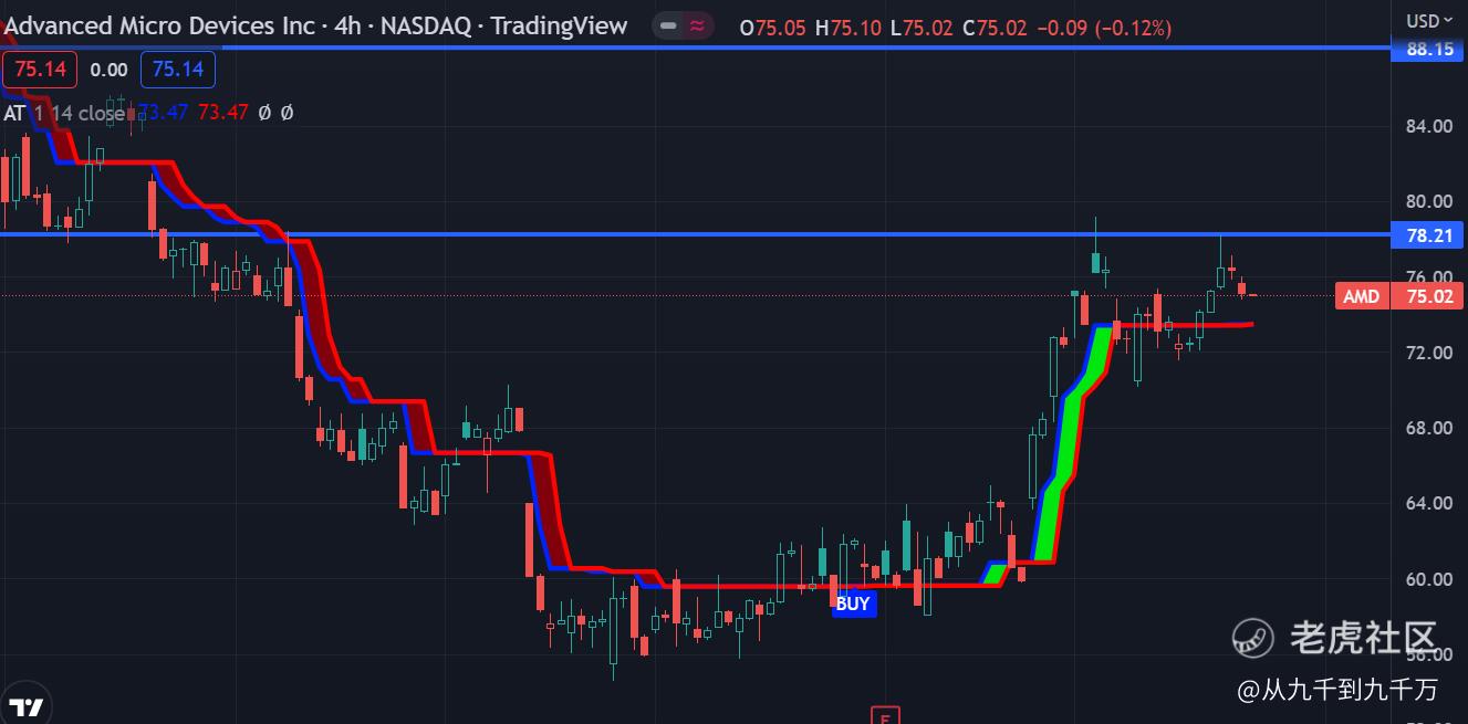 AMD$美国超微公司(AMD)$ 上周收盘在75附近,过去两周一直在71-79附近震荡,如果能够守住6月的低位71的话,应该会回到79上方。
