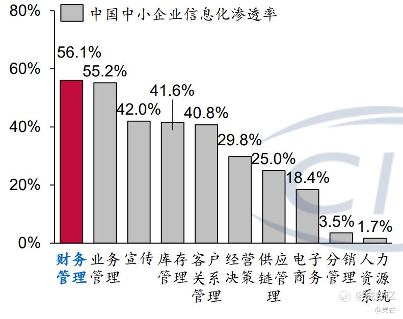 在财税数字化进程中,小微企业尤其值得关注,因为自身成本原因小微企业难以支撑高成本的财税团队,同时本身的财税风险相较成熟企业更高,多数小微企业过去采取的是代记账或者有老板本人或亲属兼做的情况,效率低下且乱账频出。因此小微企业的财税SaaS需求是相当蓬勃的,根据工信部数据统计,2021年财税数字化是中小微企业数字化渗透率最高的板块,达到了56.1%。此外,2021年国内小微企业纳税占国家税收总额的比例超过50%,小微企业财税云服务当之无愧是一个万亿规模的蓝海市场。