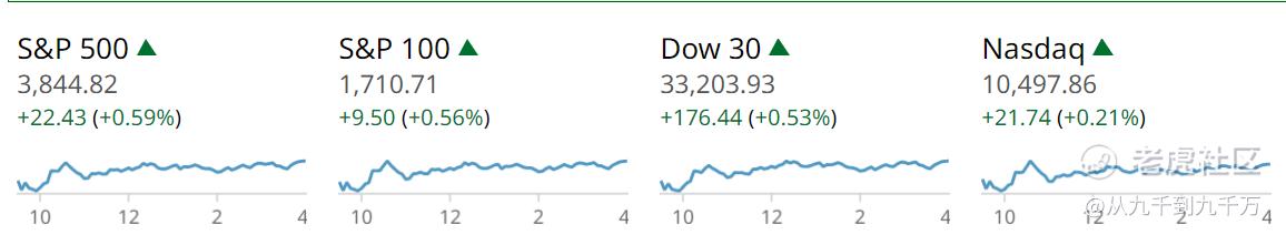 标普500指数周五收盘上涨+0.59%,道琼斯工业指数收盘上涨+0.53%,纳斯达克100指数收盘上涨+0.27%。